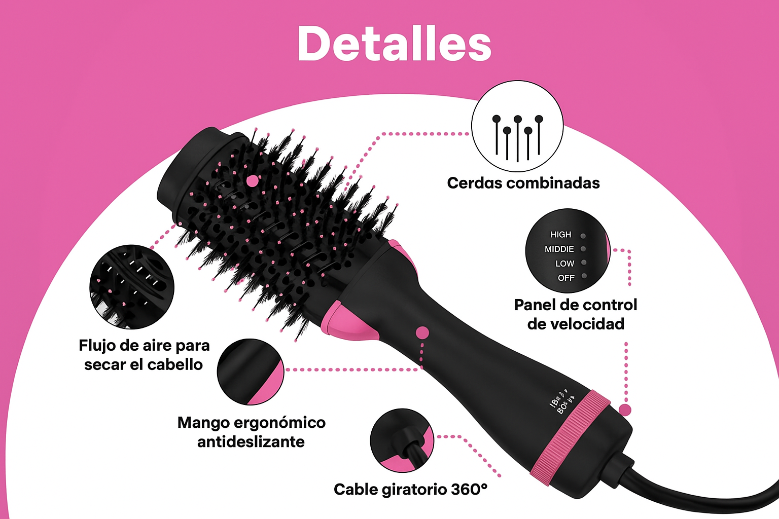 - 🌬 Tecnología iónica que reduce el frizz y protege el cabello