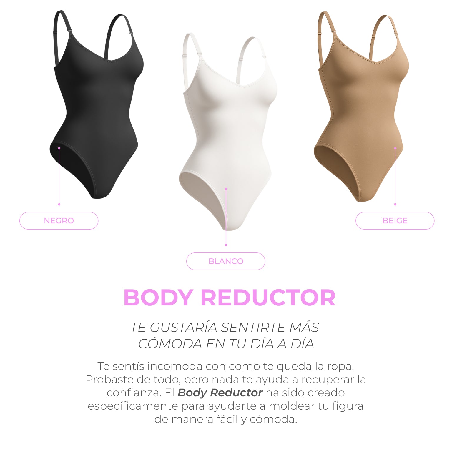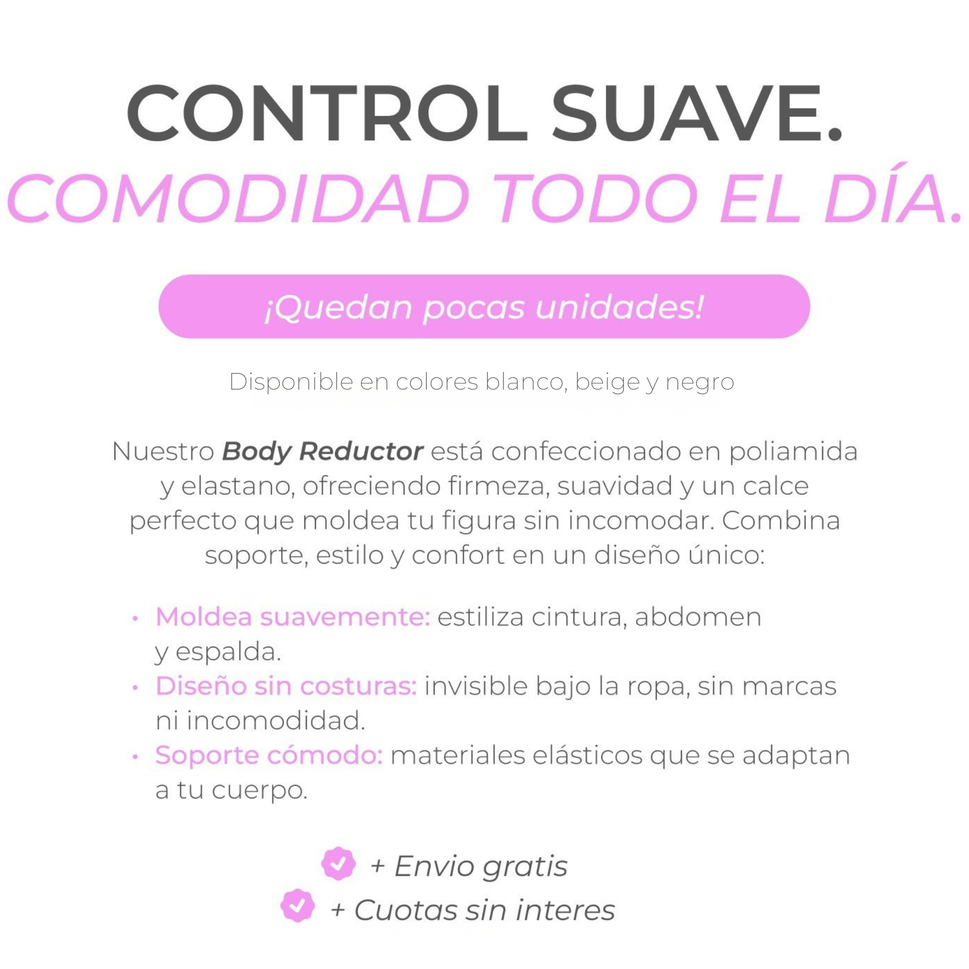 3 bodies reductores en color negro, beige y blanco, en el talle que elijas.